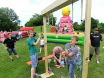 Interessantes Reaktionsspiel für alle Altersklassen. Wer fängt die meisten Teile auf, die sich per Zufallsgenerator aus zwei Meter Höhe lösen?